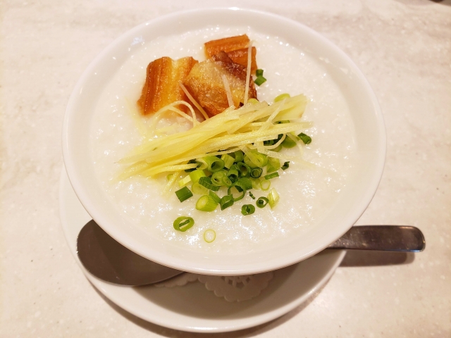 油を加えることで、栄養価が高くなり、冷めても味が変わりにくいのが中華粥の特徴。