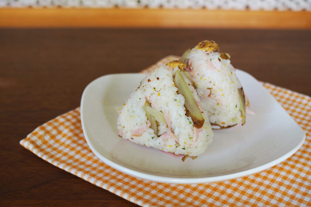 - ごぼうとハムと粒マスタードのマリネおにぎり