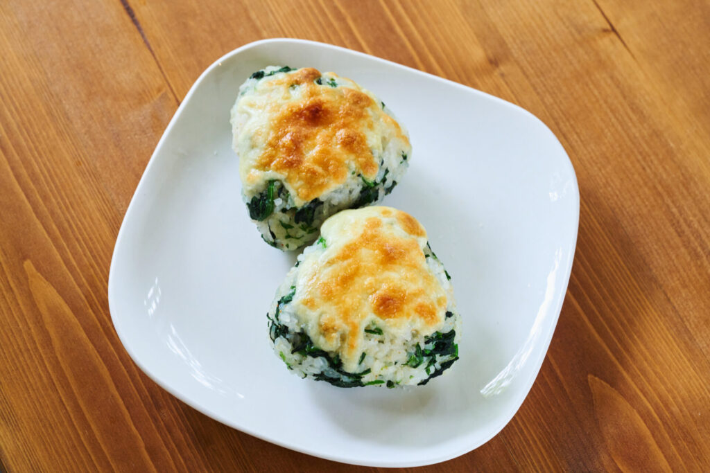 - ほうれん草と明太子のチーズ焼きおにぎり