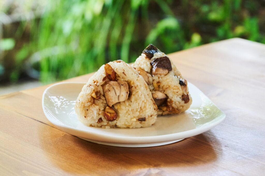 ぶりとナッツを甘辛くキャラメリゼした、コクと食感が楽しいおにぎり。角切りにしたぶりは、焼いてから煮詰めることで旨みがぎゅっと凝縮され、バターの風味と相まってリッチな味わいに。そこに、カリッと香ばしいナッツが加わり、ひと口ごとに表情のある食感が楽しめます。甘辛いタレがごはんによくなじみ、いつものおにぎりとはひと味違う、満足感たっぷりの一品です。