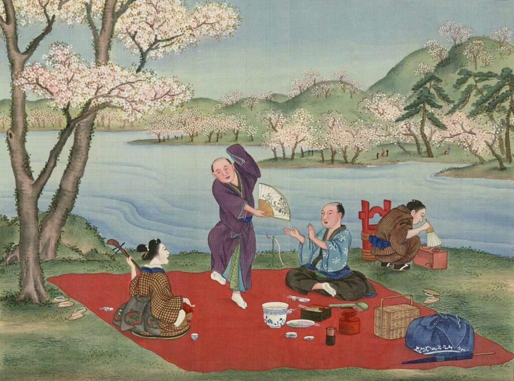 昔の人も桜の下でごはんを囲んでいたんですね。なんだか、その光景を想像するとほっこりします。